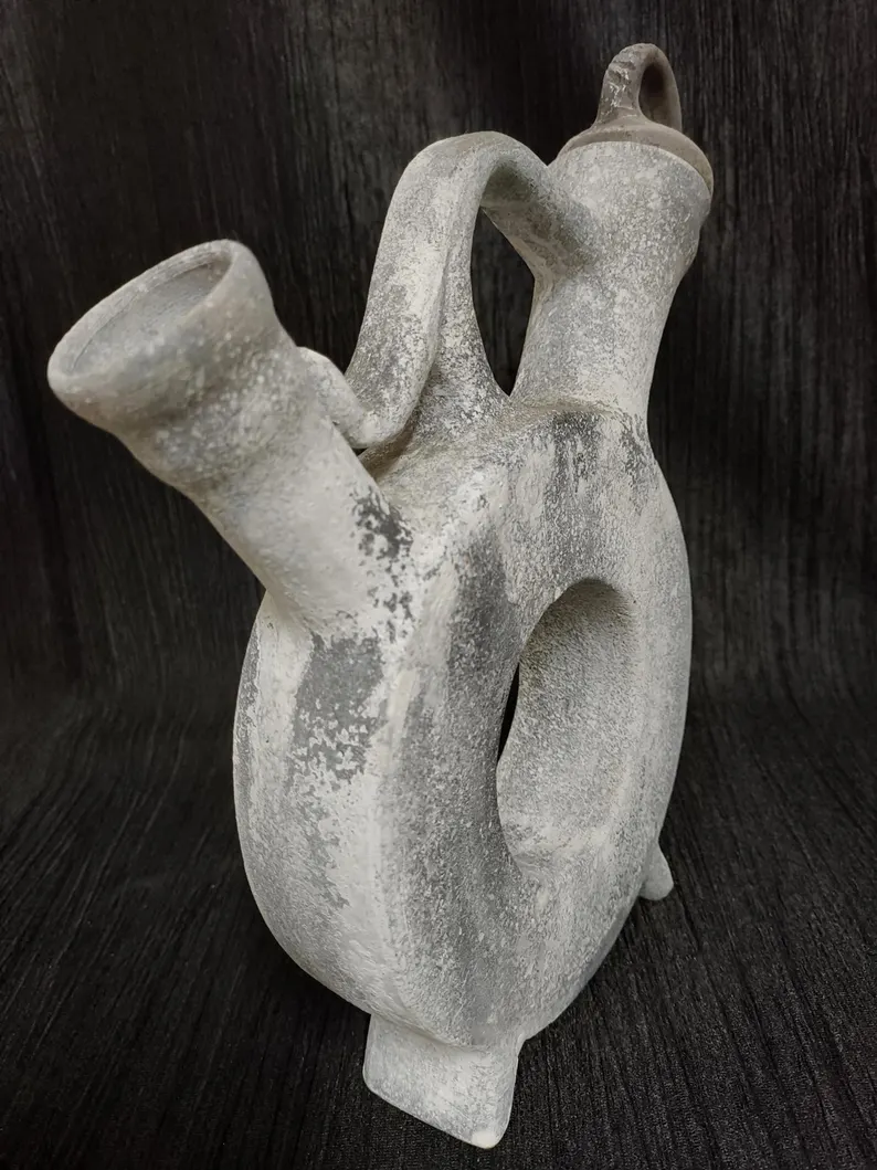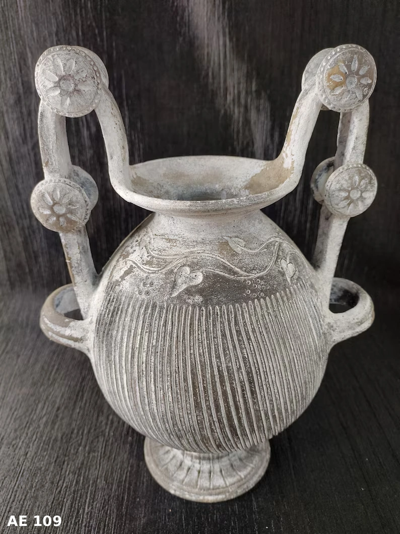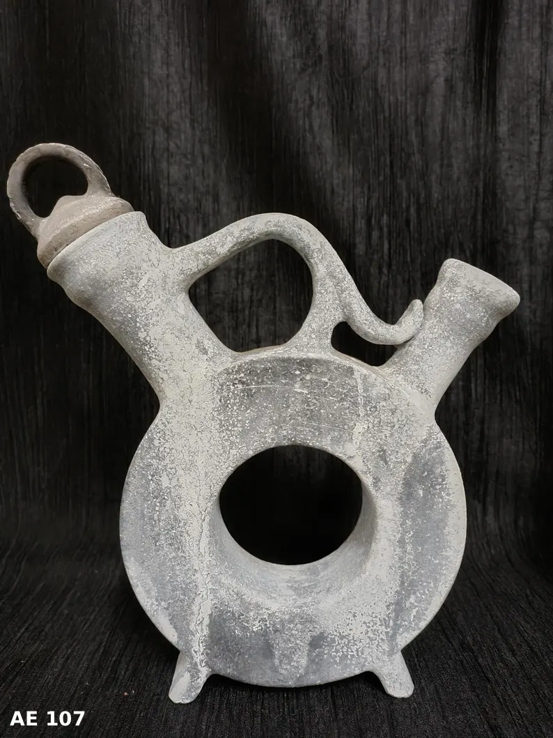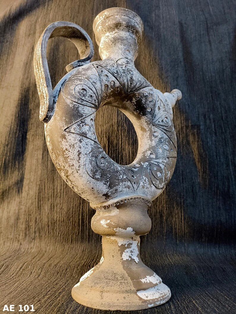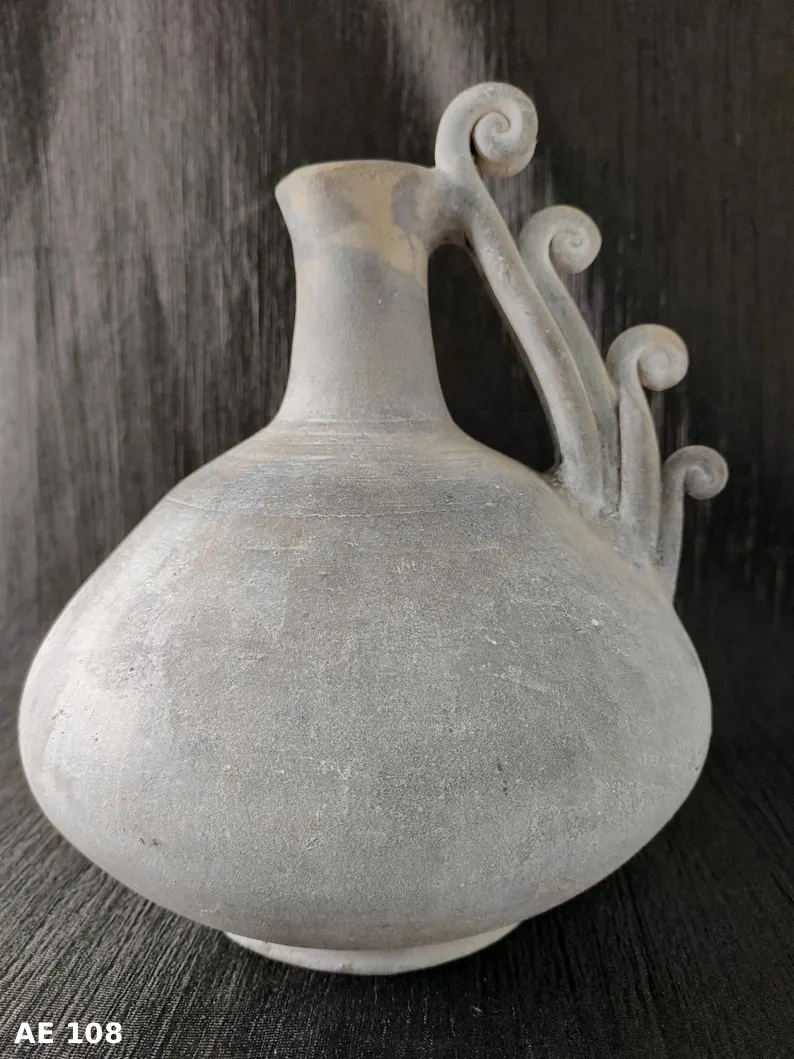 Decorative Terracotta Vessel, Central Hole Clay Vase, Curved Handle Pottery, Side Handle Terracotta Pot, Vintage Pottery, Handmade Clay Pot