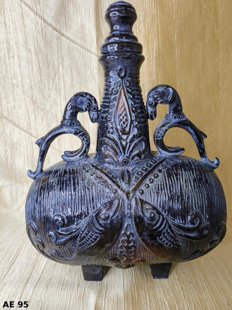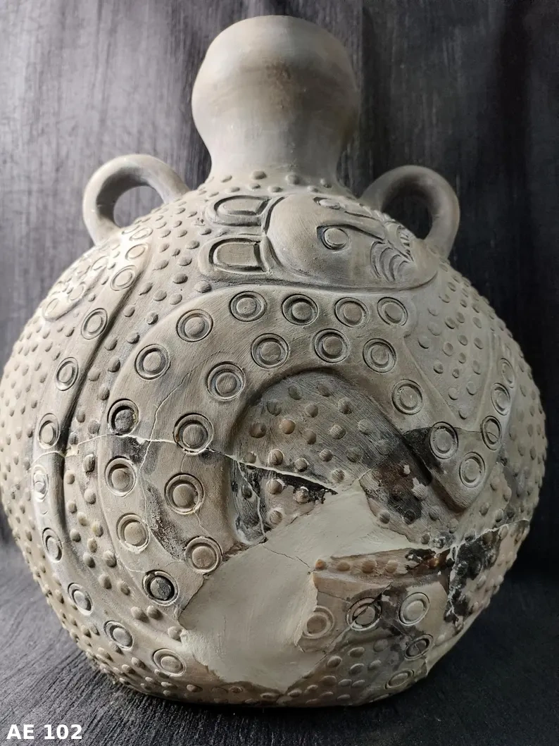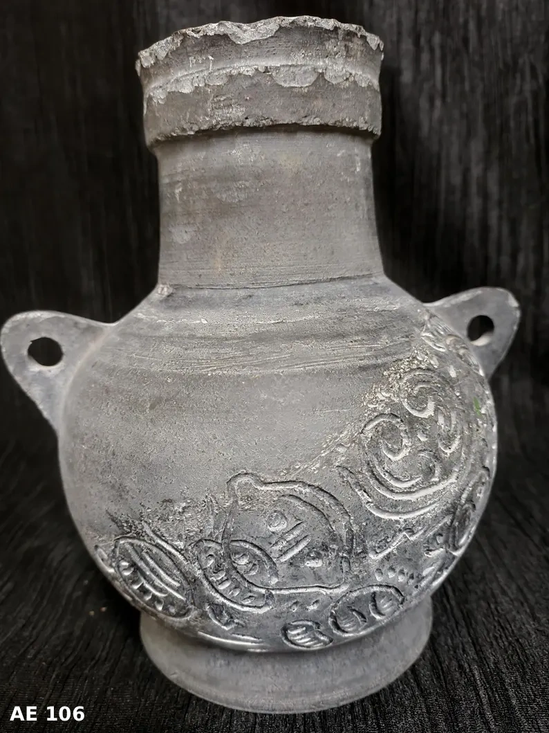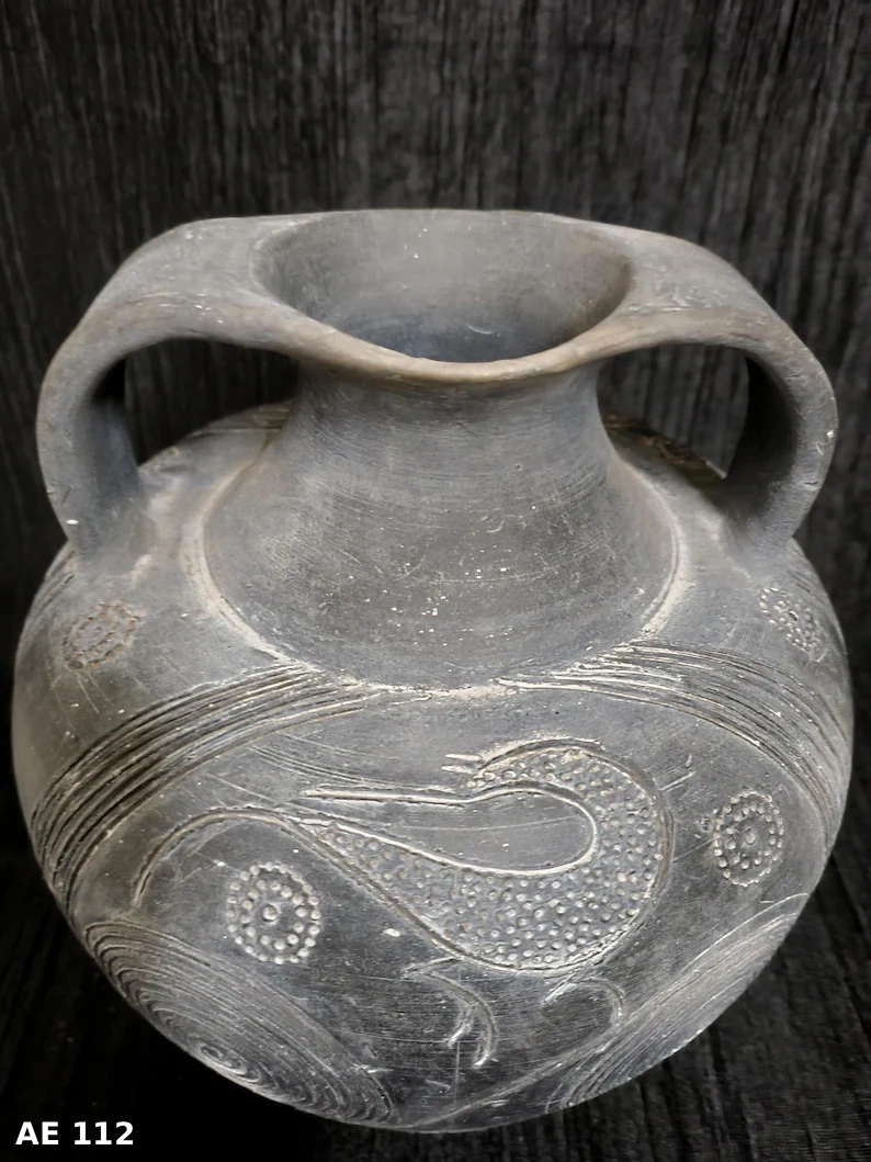 Terracotta Clay Pot, Dual Loop Handle Pot, Style Bird Motif Pot, Circular Pattern Decoration Pot, Handmade Terracotta Pot, Collectible Clay