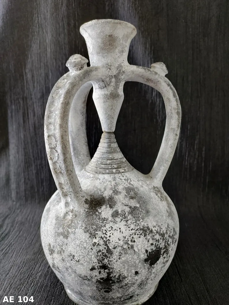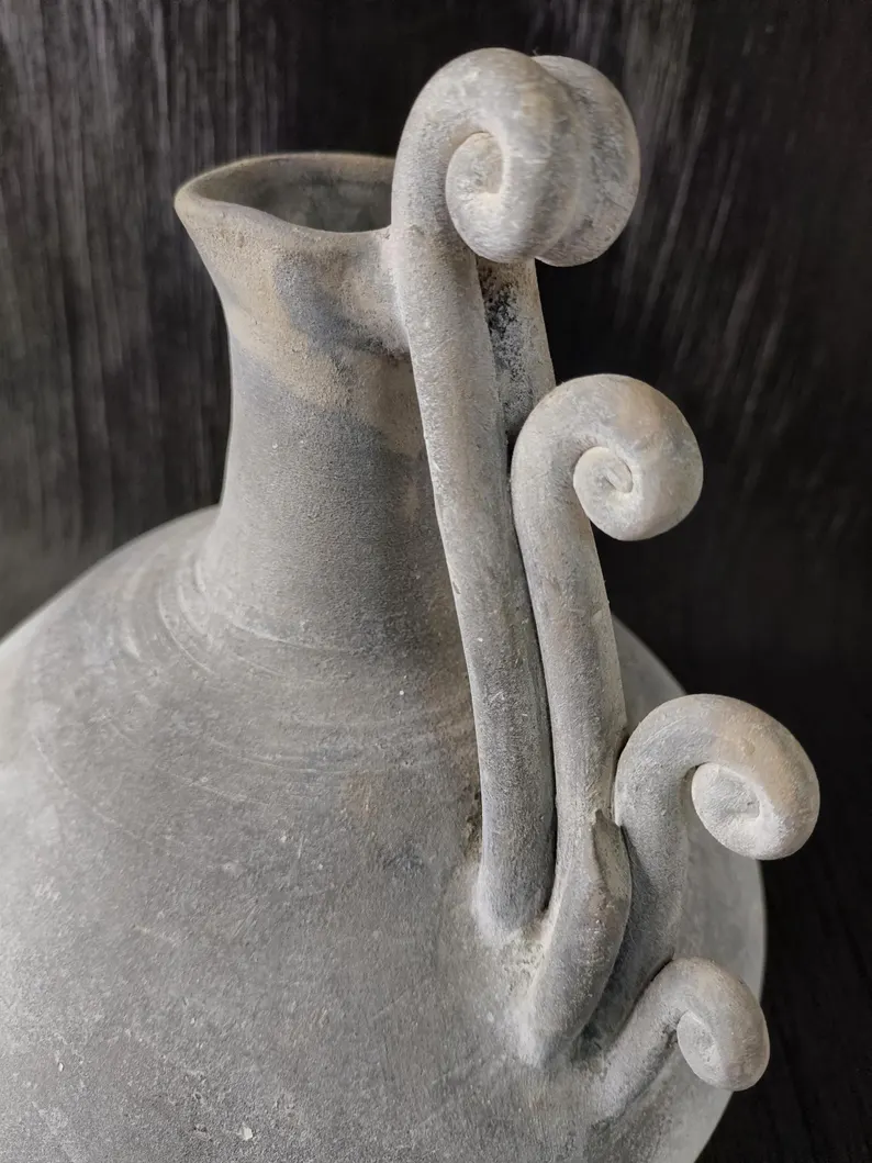 Terracotta Clay Vessel, Rounded Body Pot, Dual Curved Handle, Tall Handle Pottery, Vintage Terracotta Jar, Antique Clay Jug, Collectible Pot