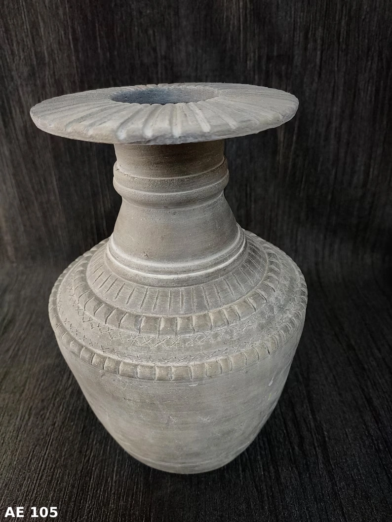 Terracotta Clay Pot, Wide Rounded Body Ceramic Vessel, Short Neck Flared Rim Pottery, Unique Carved Pot, Decorative Ceramic Jar, Clay Pot