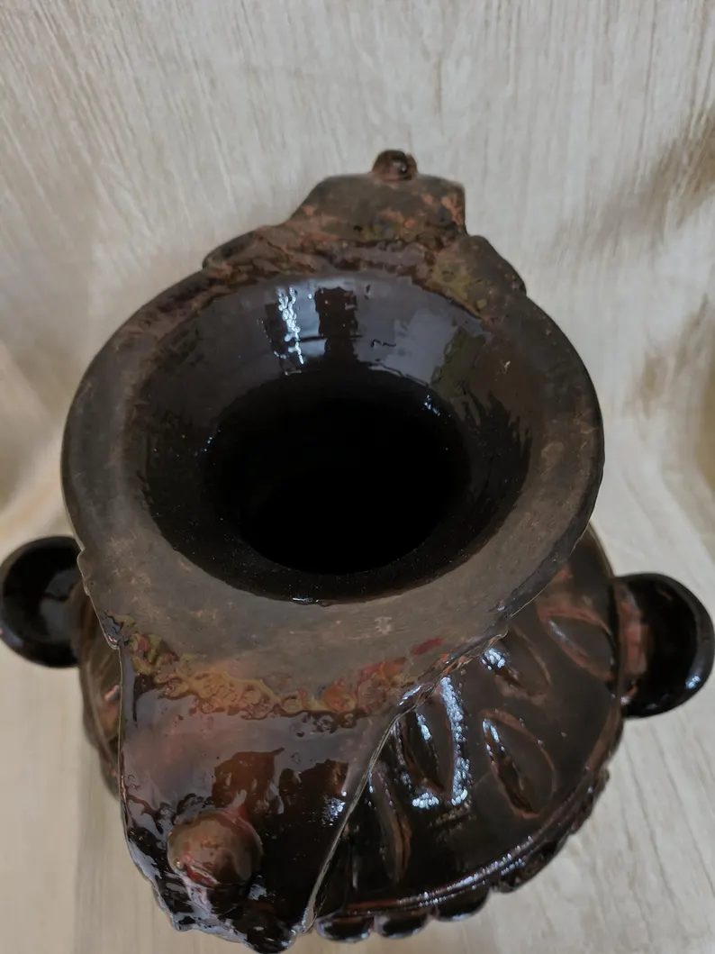Terracotta Clay Pot, Reddish-Brown Pot, Glossy Finish Pot, Vertical Handles Pot, Artistic Terracotta Pot, Statement Home Decorative Pot
