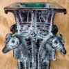 ✦ Decoration: Four sculpted ram heads in full relief, symmetrical design on each face