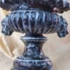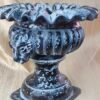 Handmade Terracotta Urn Planter with Sculpted Lion Heads, Black & White Distressed Pedestal Vase, Rustic Classical Pottery with Ruffled Rim