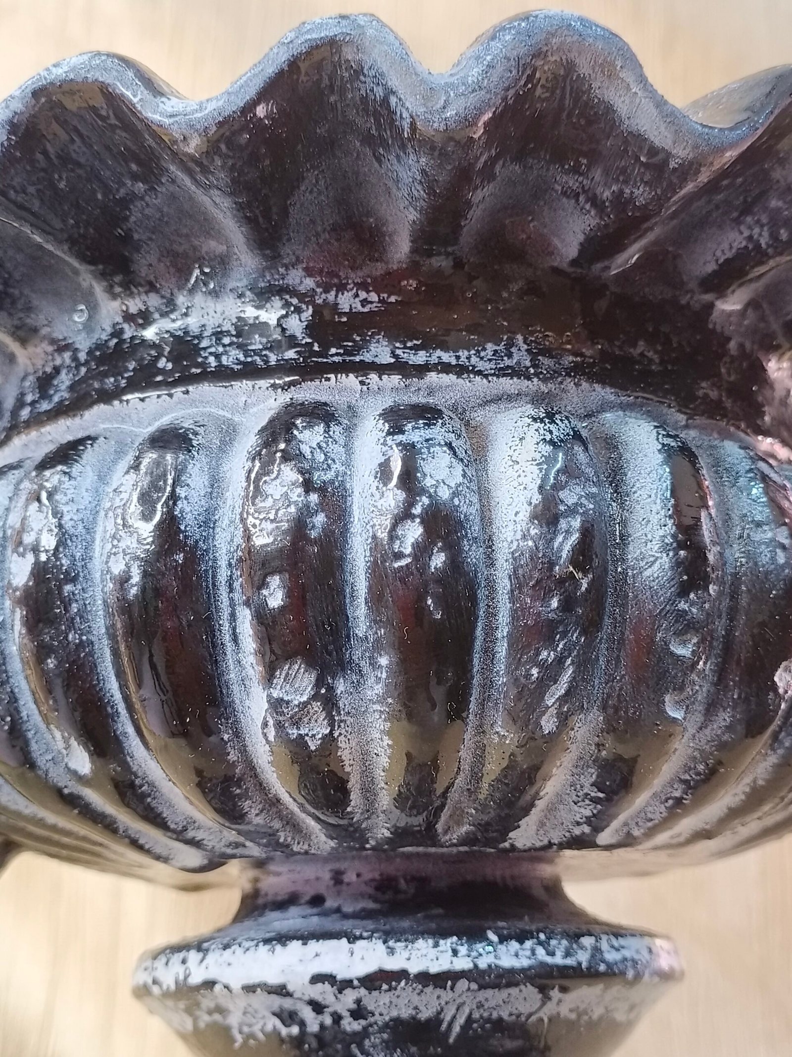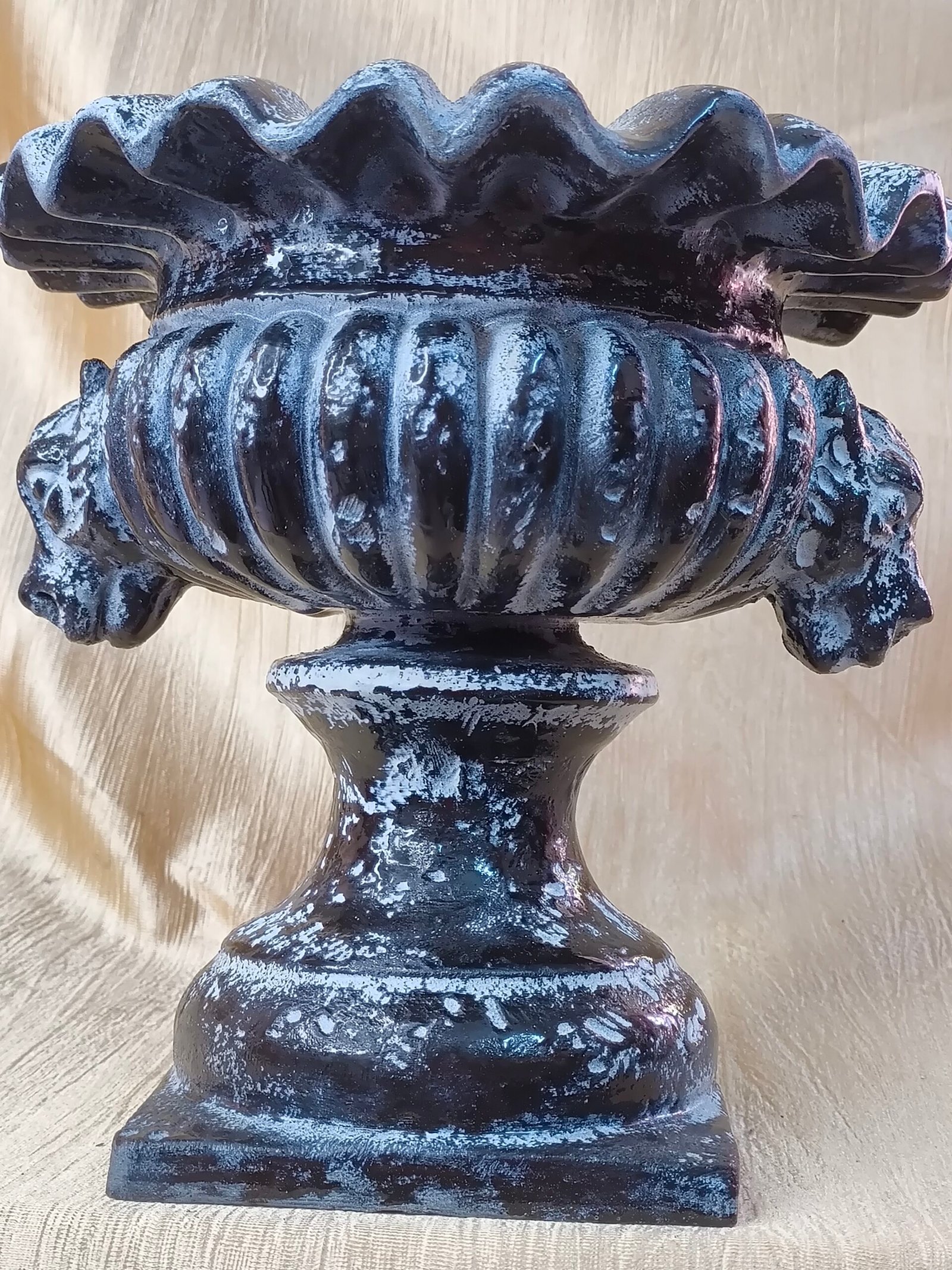 ✦ Shape: Pedestal urn with fluted body and ruffled rim