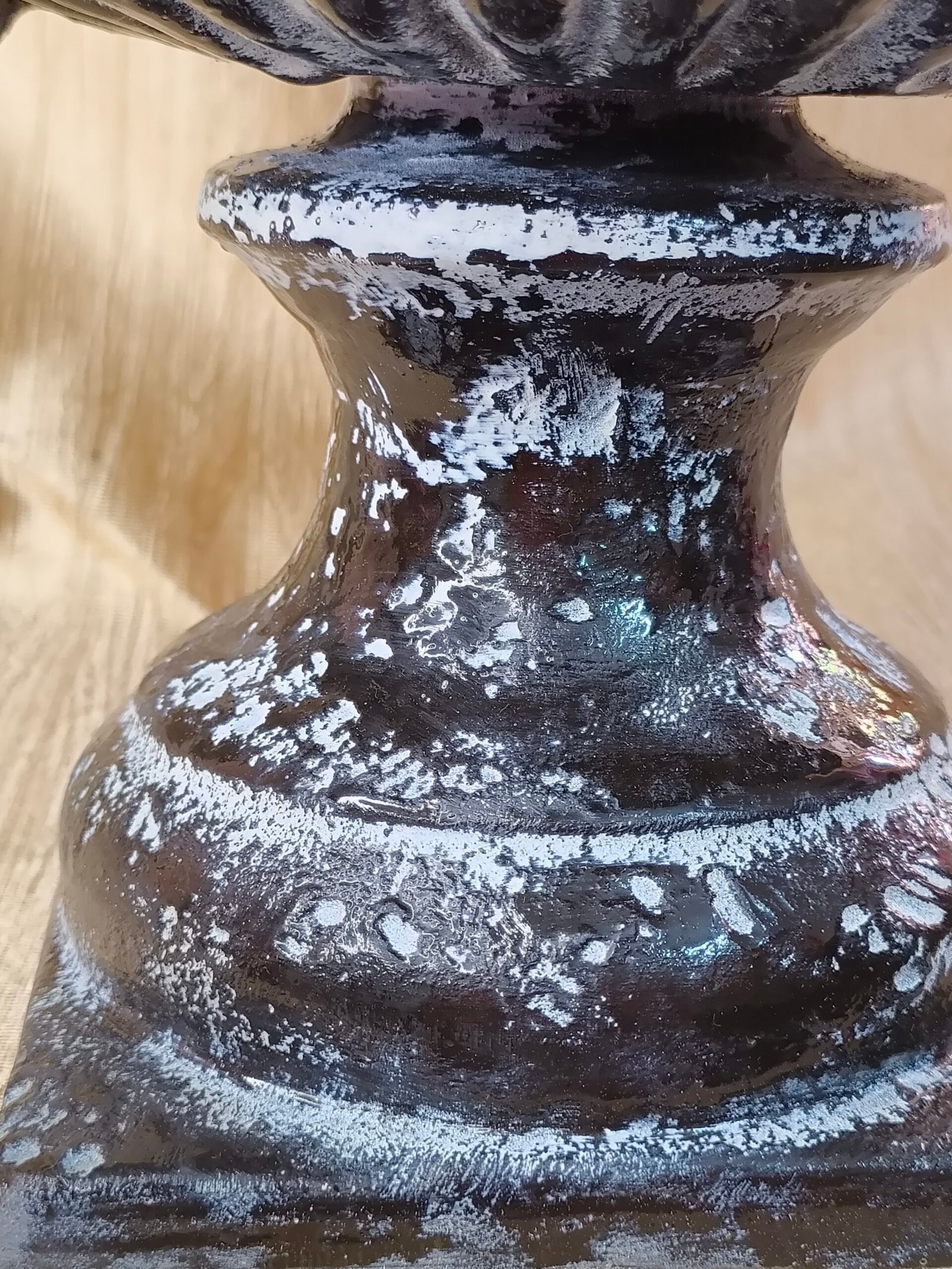 ✦ Color: Distressed black with white patina accents